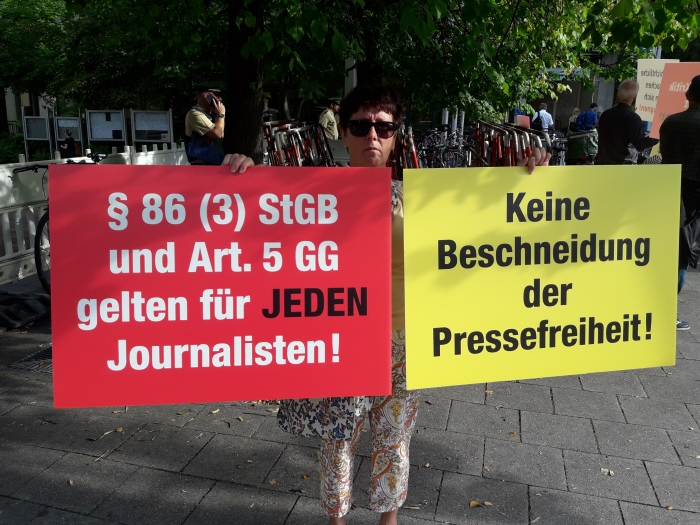 Ich bedanke mich ganz herzlich bei all jenen, die mich zu diesem Schauprozess begleiteten, die die Demonstration am Morgen vor dem Gerichtsgebäude durchführten und die mir nach diesem Skandal-Urteil ihre Solidarität aussprachen sowie ihre Unterstützung anboten. Die Plakate bei der Demo hatten allesamt ihre vollste Berechtigung:
