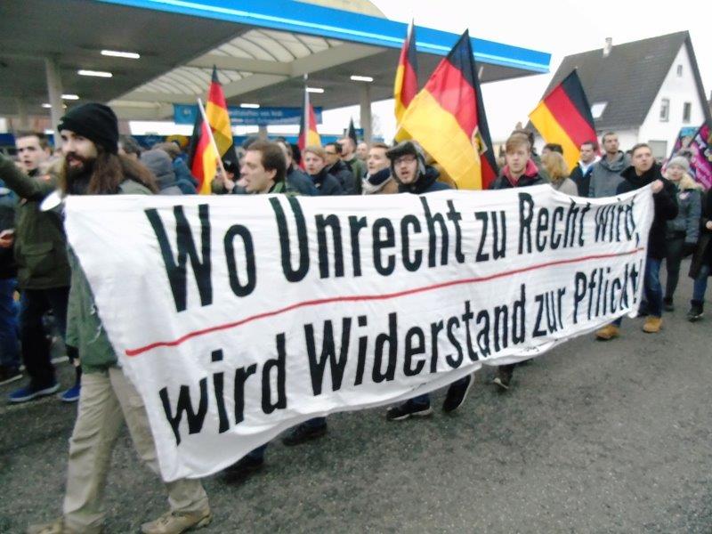 In großer Zahl demonstrierte die größte deutsche patriotische Jugendbewegung, die Identitäre Bewegung, mit Fahnen, Bannern und Sprechchören: „Wer Deutschland nicht liebt, soll Deutschland verlassen…“. Angestimmt wurde unter anderem auch „Die Gedanken sind frei“ und die Deutsche Nationalhymne.