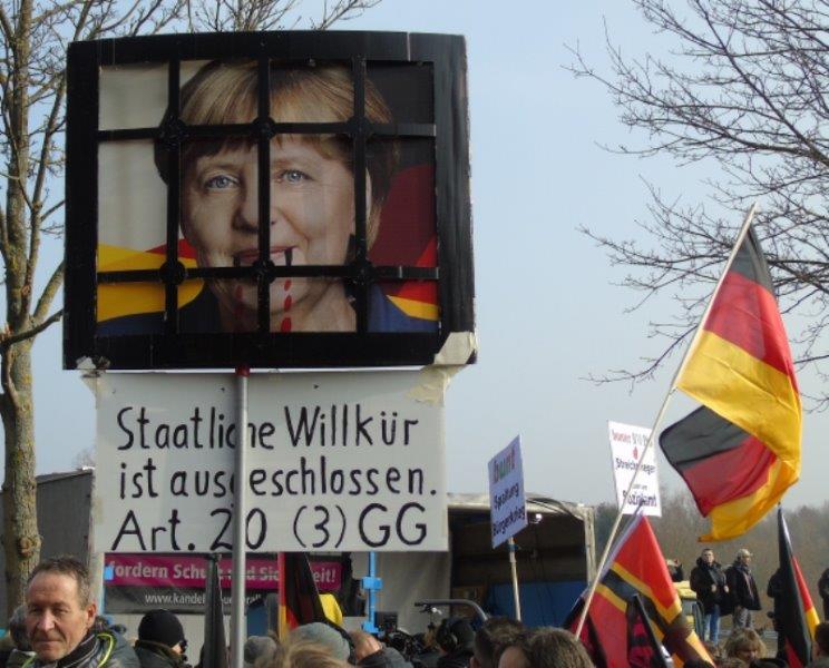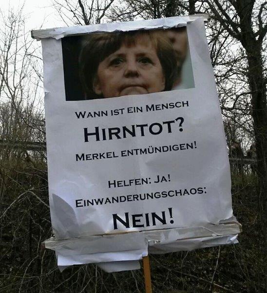Zahlreiche Anti-Merkel-Plakate: