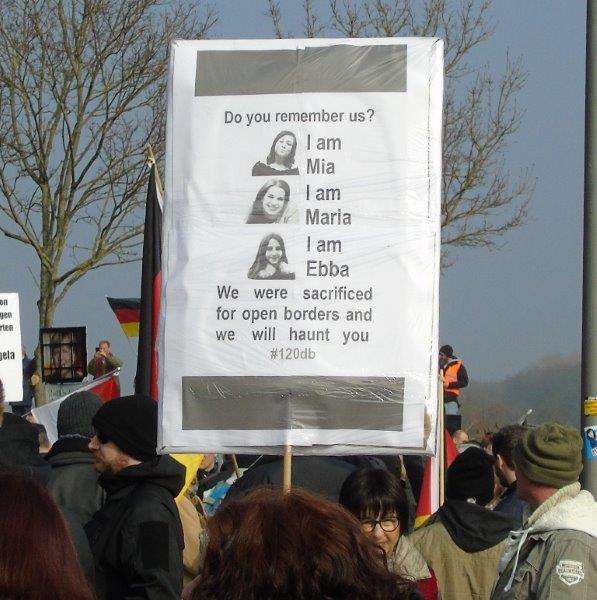 Vielfach auf Plakaten zu lesen: Die Morde an jungen Frauen durch die ungezügelte und fehlgeleitete Migrationspolitik.