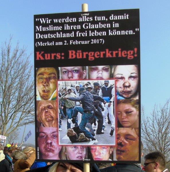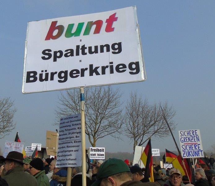 Hey, wir sind nicht eine anonyme Macht, kein Apparat, der irgendetwas in seinem Sinne lenken will, wir sind selbst Bürger dieses Landes, die dieses schützen wollen und denen etwas daran liegt, dass es lebens- und liebenswert bleibt. Und das ist massiv in Gefahr, wenn eine blindwütige Kanzlerin Millionen junger Männer aus den Gewaltkulturen dieser Erde ins Land lotst. Wir wollen das nicht und wir wehren uns.