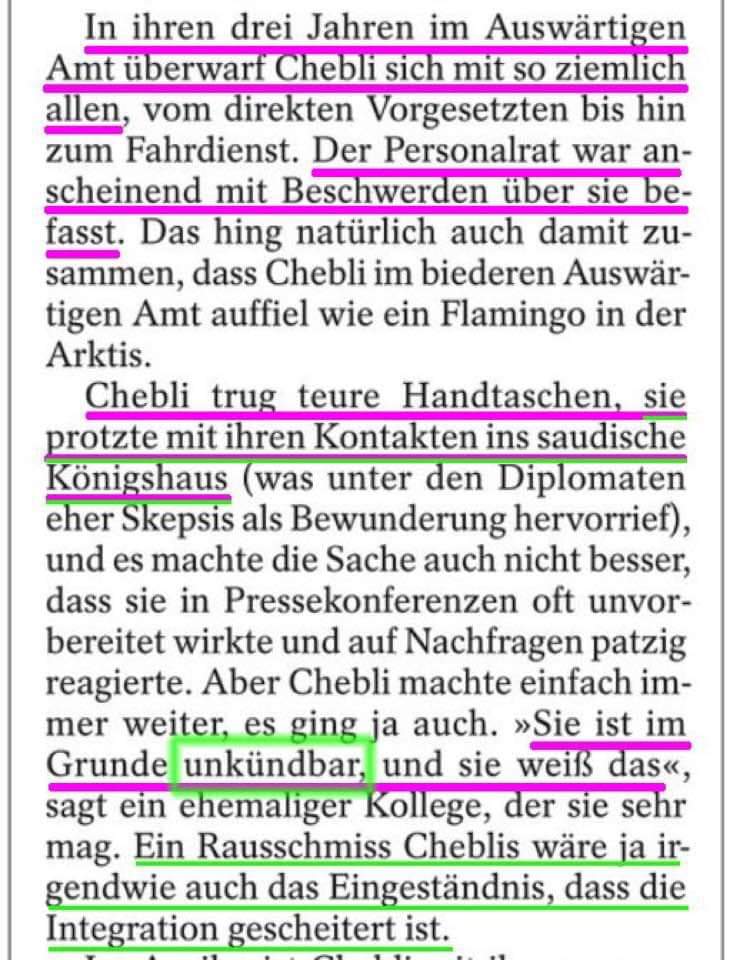 Aber Sawsan Chebli mit dem Ex-Kanzler zu vergleichen halte ich für völlig daneben. Schröder war vor der Politik erfolgreich, in der Politik erfolgreich (nicht in jedem Punkt, da kann man drüber streiten) und auch nach der Politik erfolgreich. Der hat das Reicht, dicke Stumpen zu qualmen und einen teuren Anzug zu tragen. Frau Sawsan Chebli war vorher eine arme Sau, ist durch Politik reich geworden, und wenn die SPD in der Gruft verschwunden sein wird, wird sie feststellen, dass sie in der freien Wirtschaft keine Chance hat, weil sie nicht mal mehr als Beraterin oder zum Spannen von Netzwerken geeignet ist.