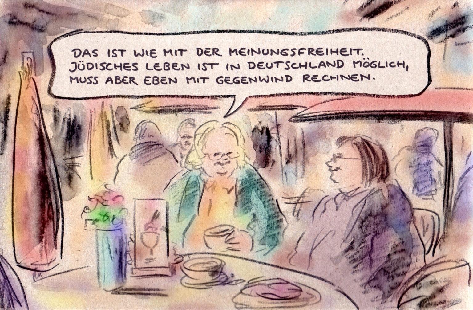 „Antisemitismus ist also ein importiertes Problem? In einem Land, zu dessen Staatsräson das Gedenken an die Shoa gehört? Mit einem ehemaligen Verfassungschef, der antisemitische Verschwörungsmythen verbreitet? Mit Coronaleugnern, die sich auf Demos mit Judenstern zur Schau stellen? Achso.“