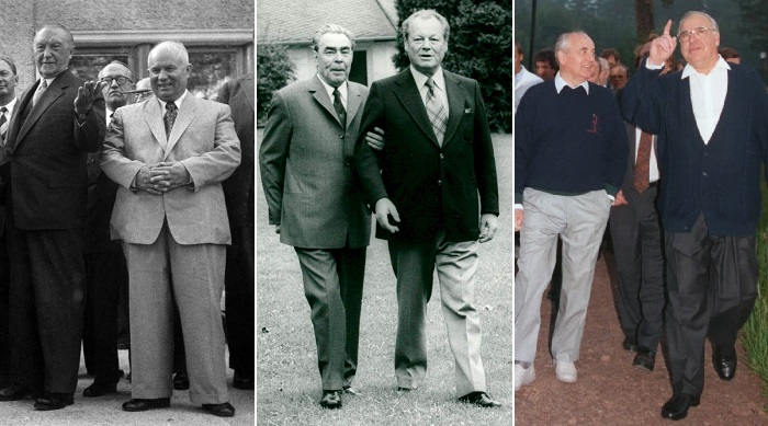 die beiden CDU Kanzleer auf dem Bild ziehe ich mir vor, da sie Leistung zeigten, gesunde Wirtschaft, incl. Sozialer Marktwirtschaft, der Willy Weinbrand vor allem mit Show Effekten versuchte etwas entgegenzustellen.