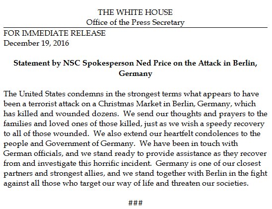 Der Ablauf wird wieder sein wie üblich: Merkel wird mit traurigem Dackelblick sagen: „Ich bin in Gedanken bei den Angehörigen, es war ein feiger Anschlag, blablabla“. Hochrangige CDU / SPD / Grünen-PolitikerInnen werden betonen: Hat nix mit nix zu tun. Gabriel wird vor Pauschalisierung warnen und sagen, dass dies ein Einzelfall war und der Islam eine sehr friedliebende Religion sei. Aber die bösen Rechten würden dies natürlich wieder für Propaganda ausschlachten.
